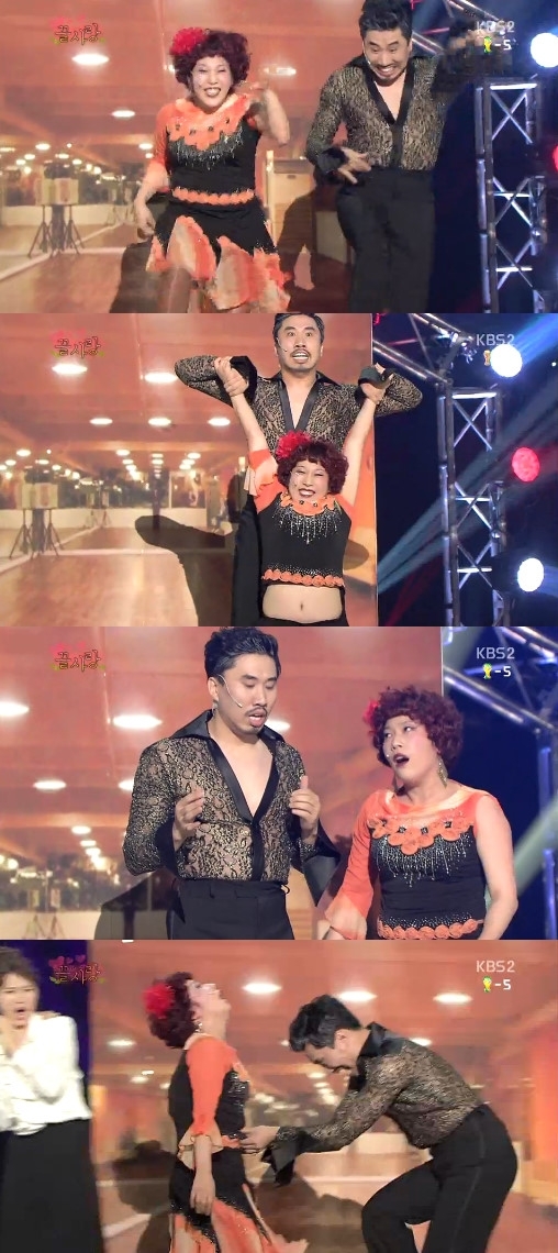 정태호와 김영희는 8일 오후 방송된 KBS 2TV 예능프로그램 '개그콘서트'의 코너 ‘끝사랑’에서 함께 춤을 배우기 위해 댄스 학원에 갔다.