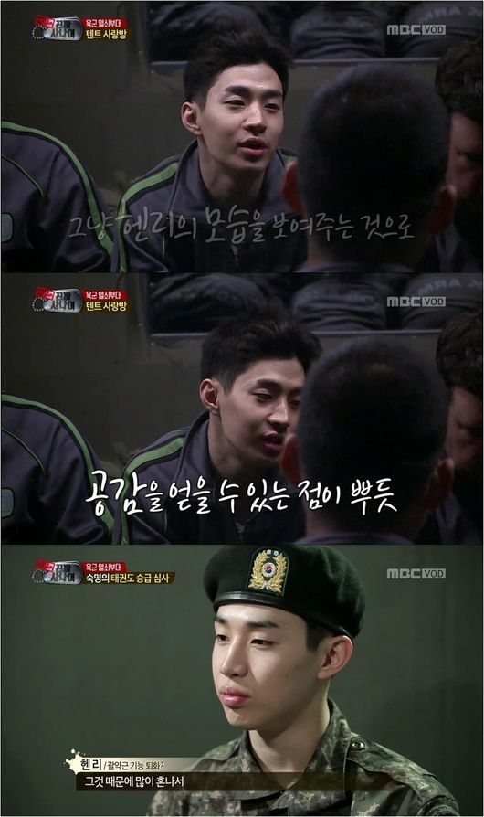 또한 그는 군대에 대해 “인생의 전환점이 됐다”면서 “내 삶의 의미를 찾게 해줬다. 사람들이 나를 보고 웃는 걸 보니 행복하다”고 고마운 마음을 드러냈다. 한국 군대에 대한 정보 부족과 문화적인 차이로 인해 초반 군대 무식자로 불리며 좌충우돌 실수를 했던 헨리의 당찬 각오는 이번이 처음이 아니었다. 그는 앞서 지난 4월에도 “진짜 군인이 되겠다”고 열정을 표현한 바 있다.