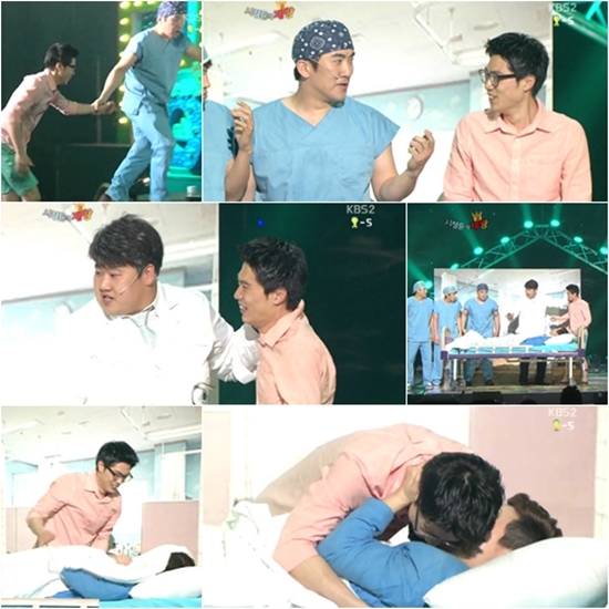 이날 역시 인기리에 방영 중인 '닥터이방인'을 패러디 해 시청자들의 흥미를 유발시키는데 성공했다. 하지만 패러디가 전부는 아니었다. 이상훈은 갑자기 쓰러진 양선일을 수술해야 한다며 급하게 의사를 찾았고, 사람이 부족하다는 이유로 관객석에 있던 남자 관객 한 명을 급하게 섭외했다.