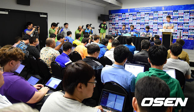 9일 오전(이하 한국시간) 미국 플로리다주 마이애미 선라이프 스타디움에서 열린 대표팀 기자회견에서 홍명보 감독과 곽태휘가 취재진들의 질문에 답하고 있다.