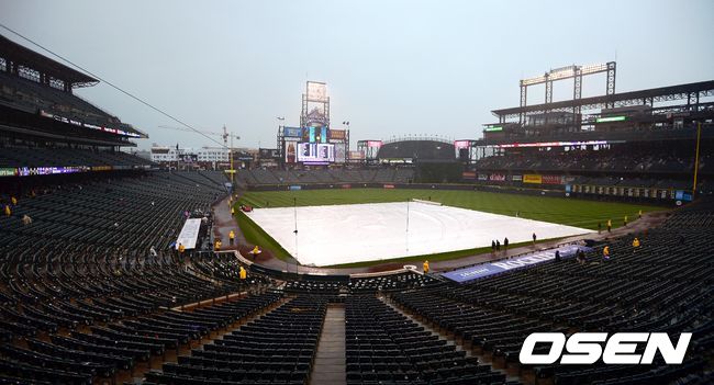 9일 새벽(한국시간) 미국 콜로라도주 덴버 쿠어스필드에서 열린 '2014 메이저리그' 미국 메이저리그 콜로라도 로키스와 LA 다저스의 경기, 6회말 시작전 많은 비로인해 경기가 중단됐다.