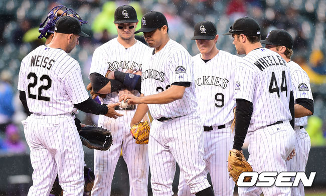 9일 새벽(한국시간) 미국 콜로라도주 덴버 쿠어스필드에서 열린 '2014 메이저리그' 미국 메이저리그 콜로라도 로키스와 LA 다저스의 경기, 6회초 1사 1,2루 콜로라도 호르헤 데라 로사가 강판되고 있다.