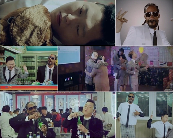 9일 오전 8시 15분 공개된 싸이의 신곡 '행오버' 뮤직비디오는 싸이 특유의 재기발랄한 아이디어가 돋보였다. 뮤직비디오는 노래 제목처럼 전반적으로 한국의 음주문화에 대해 담고 있다. 익숙하면서도 스눕독의 출연으로 색다른 분위기를 연출했다.