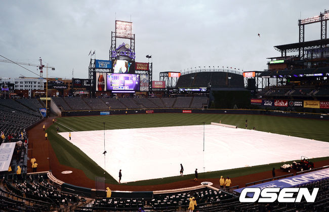 다시 내리는 비로 인해 그라운드에 방수포가 덮혀있다./youngrae@osen.co.kr