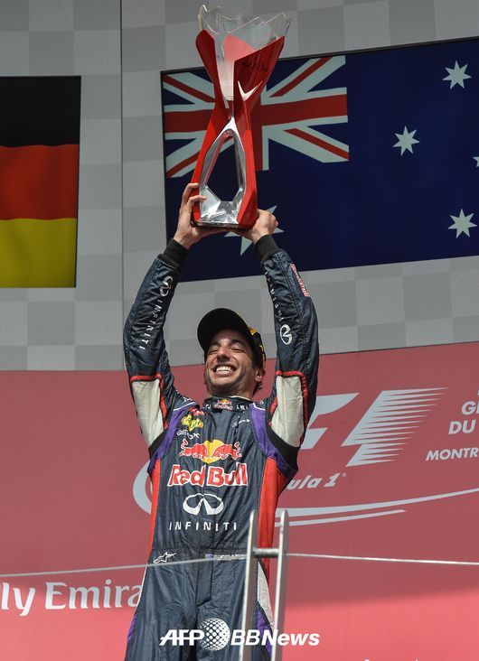 리카르도는 9일(이하 한국시간) 캐나다 몬트리올의 질빌뇌브 서킷에서 열린 2014시즌 7라운드 캐나다 그랑프리 결선에서 4.361㎞의 서킷 70바퀴(총 305.270㎞)를 1시간 39분 17초 066만에 달려 1위를 차지했다.