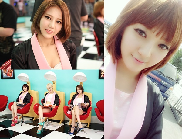 9일 오전 AOA 공식 트위터를 통해 공개된 사진 속에는 신곡 제목 '단발머리'에 맞게 발랄한 단발머리로 출격 준비를 완료한 지민, 초아, 유나, 혜정, 찬미의 뮤직비디오 현장이 담겼다.