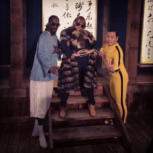 그의 옆에 있는 싸이는 이소룡의 트레이드마크인 노란색 트레이닝복을 입고 이소룡 포즈를 취하고 있으며 스눕독 역시 이소룡의 포즈를 취하고 있어 웃음을 자아낸다.