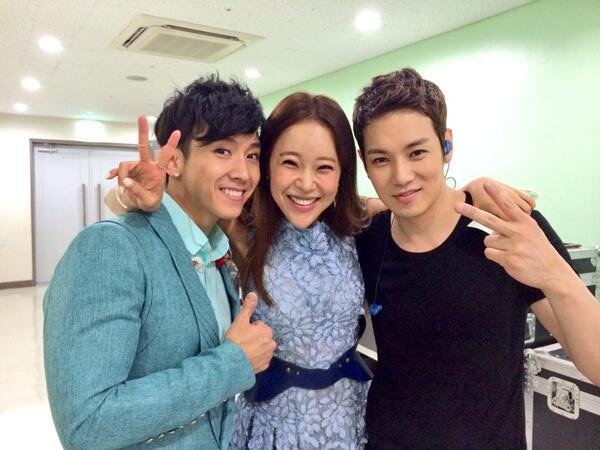 남성듀오 플라이투더스카이가 가수 백지영과 다정한 사진을 찍어 눈길을 끌고 있다.