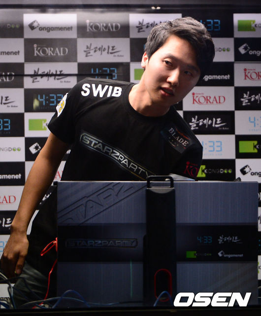 9일 서울 용산 스포츠 온게임넷 상설경기장에서 진행된 '콩두스타즈파티', 1세트 나도현과 김성제의 경기, 김성제가 승리후 나도현의 눈치를 살피고 있다.