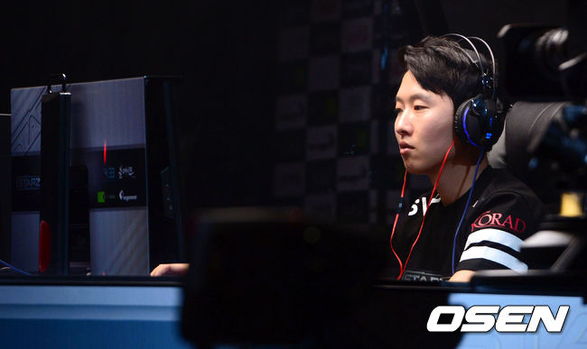 9일 서울 용산 스포츠 온게임넷 상설경기장에서 진행된 '콩두스타즈파티', 1세트 나도현과 김성제의 경기, 김성제가 플레이를 하고 있다.