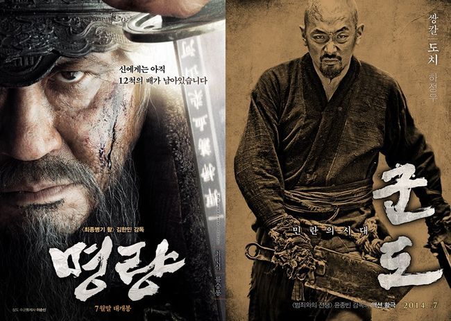 '명량'은 9일, 최민식-류승룡의 캐릭터 포스터와 티저 예고편을 공개하며 오는 7월 30일 개봉일을 확정했다. 이는 앞서 개봉일을 확정한 '군도'와 단 1주일 차이. '군도'는 오는 7월 23일 개봉을 확정한 바 있다.