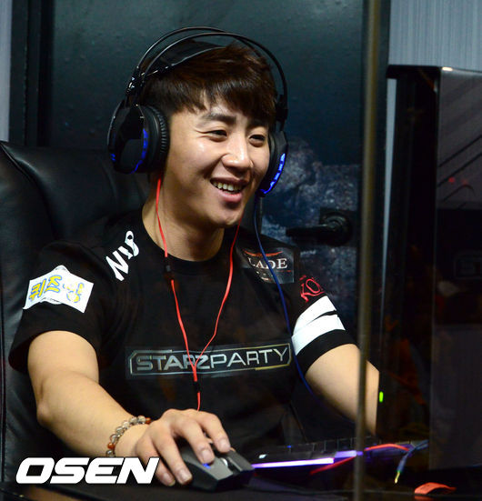 9일 서울 용산 스포츠 온게임넷 상설경기장에서 진행된 '콩두스타즈파티', 3 VS 3 팀플 경기에서 패한 홍진호가 어색한 웃음을 짓고 있다.