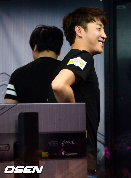 9일 서울 용산 스포츠 온게임넷 상설경기장에서 진행된 '콩두스타즈파티', 3 VS 3 팀플 경기에서 홍진호가 패배후 아쉬워하고 있다.