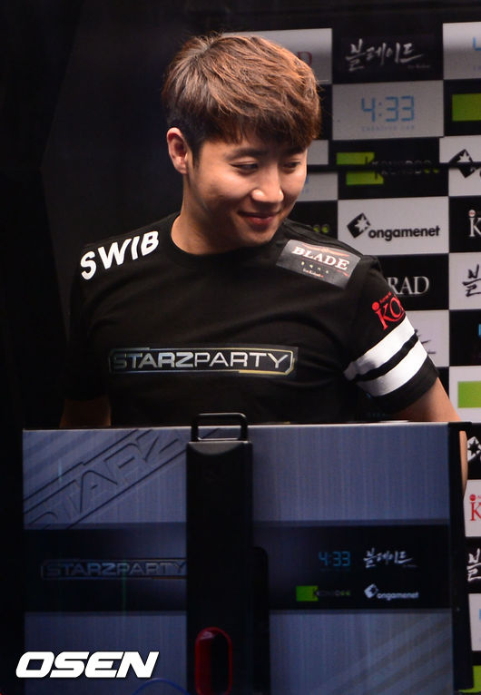 9일 서울 용산 스포츠 온게임넷 상설경기장에서 진행된 '콩두스타즈파티', 7세트 강민과 경기에서 승리한 홍진호가 미소 짓고 있다.