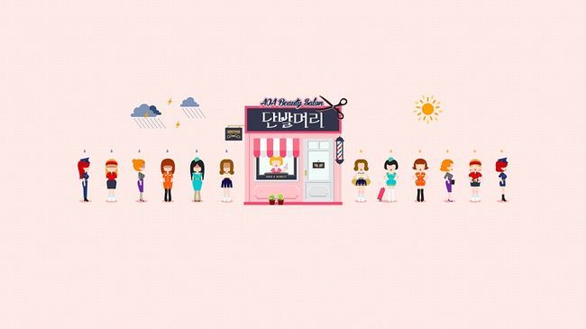 AOA 뷰티살롱 입장 전 우울모드에 빠져있던 6명 멤버들이 ‘단발머리’ 변신 후 화창모드로 전환됐다는 스토리가 일러스트와 어우러져 아기자기하고 귀여운 느낌을 준다.