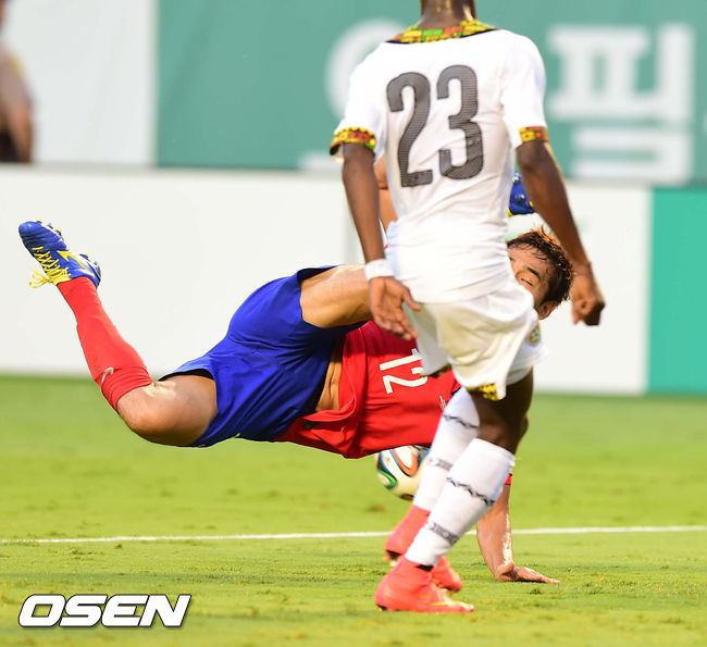 10일(이하 한국시간) 미국 마이애미에 위치한 선라이프 스타디움에서 열린 한국과 가나의 평가전, 전반 박주영이 시저스킥을 시도하고 있다.