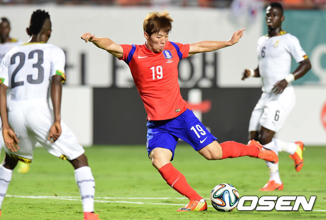 10일(이하 한국시간) 미국 마이애미에 위치한 선라이프 스타디움에서 열린 한국과 가나의 평가전, 후반 김보경이 슛을 시도하고 있다.