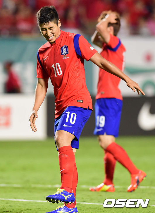 10일(이하 한국시간) 미국 마이애미에 위치한 선라이프 스타디움에서 열린 한국과 가나의 평가전, 후반 잇단 슈팅에도 불구하고 골 찬스를 놓친 이근호가 아쉬워하고 있다.