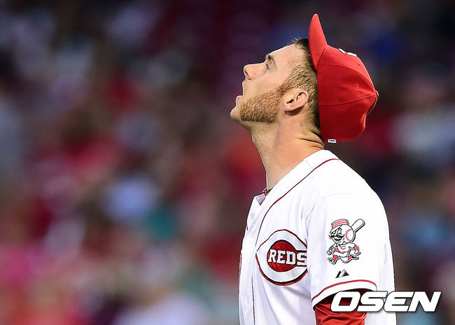 5회초 2사 1,2루신시내티 레즈 싱그라니가 LA 다저스 밴 슬라이크에게 스리런 홈런을 허용한 뒤 아쉬워하고 있다.