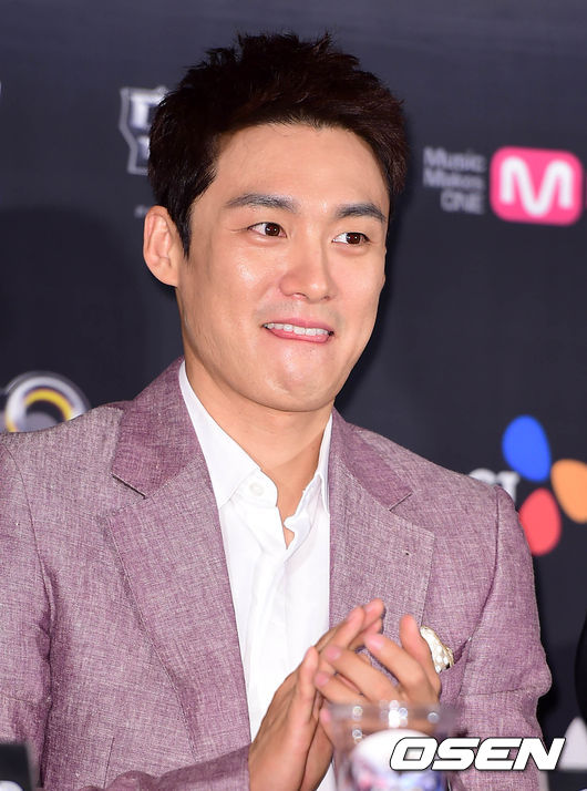 MC 오상진이 취재진의 질문을 듣고 있다.