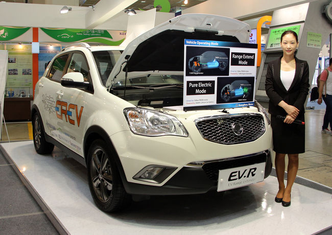 쌍용차가 국책과제로 개발 중인 친환경 기술을 적용한 '코란도 C EV-R'을 전시했다.