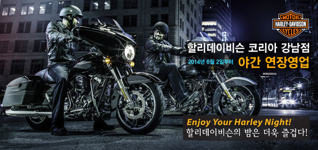 할리데이비슨 코리아는 최근 할리데이비슨 코리아 강남점의 영업시간을 기존 보다 3시간 연장된 밤 10시까지로 변경했다고 10일 밝혔다.