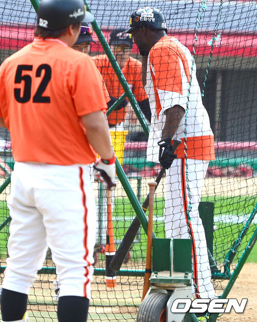 10일 광주-기아챔피언스필드에서 열린 2014 한국야쿠르트 세븐 프로야구 KIA 타이거즈와 한화 이글스의 경기에 앞서 한화 정근우와 피에가 타격연습 순서를 위해 가위-바위-보를 하고 있다.