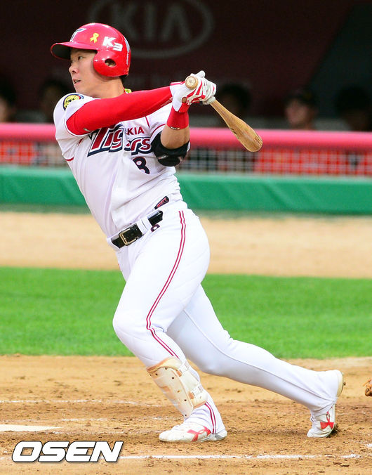 10일 광주-기아챔피언스필드에서 열린 2014 한국야쿠르트 세븐 프로야구 KIA 타이거즈와 한화 이글스의 경기, 1회초 2사 1,2루 KIA 안치홍이 역전 1타점 적시타를 날리고 있다.