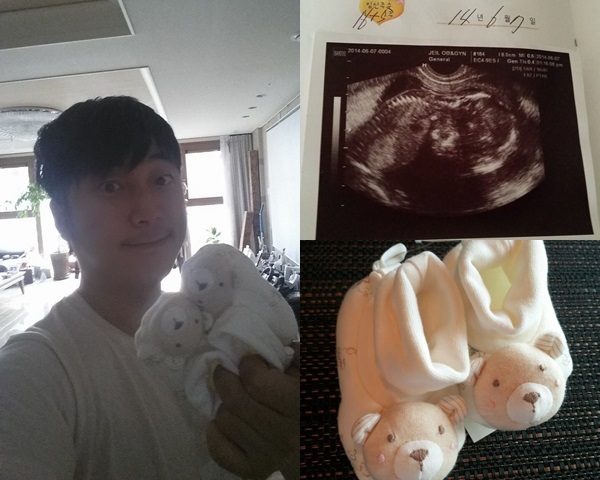 사진 속에서 우승민은 신생아 신발을 들고 카메라를 향해 환하게 웃고 있다. 또한 다른 사진에는 지난 7일 찍은 임신 4개월 초음파 사진이 담겨 있다.