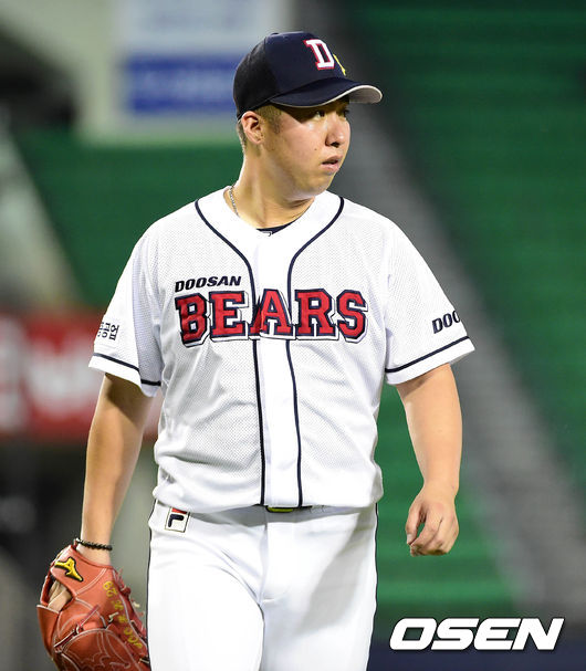 4회초 무사 1,2루 두산 유희관이 마운드를 내려가고 있다.