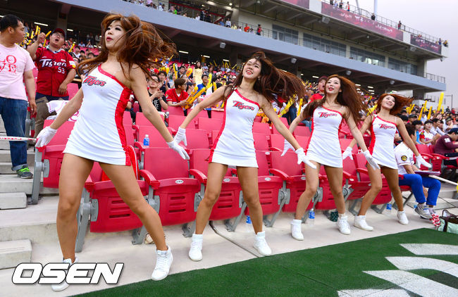 10일 광주-기아챔피언스필드에서 열린 2014 한국야쿠르트 세븐 프로야구 KIA 타이거즈와 한화 이글스의 경기, KIA 치어리더가 열띤 응원을 펼치고 있다.