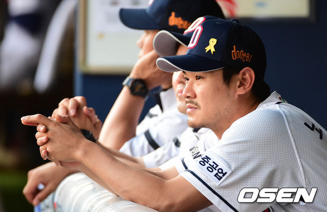 1회초 두산 노경은이 더그아웃에서 경기를 지켜보고 있다.