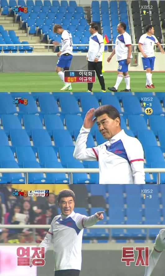 이덕화는 10일 오후 방송된 KBS 2TV ‘우리동네 예체능’에서 이규혁과 자리를 바꿔 ‘우리동네FC’ 팀 선수로 활약했다.