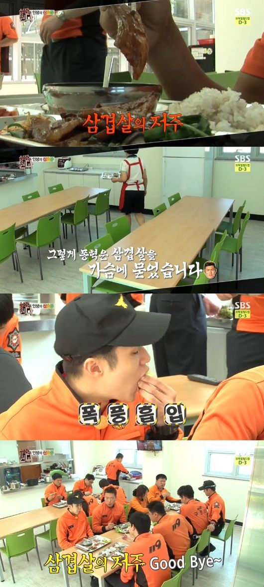 10일 방송된 SBS '심장이 뛴다'에서는 멤버들이 출동을 마치고 돌아와 식사를 하는 내용이 전파를 탔다.