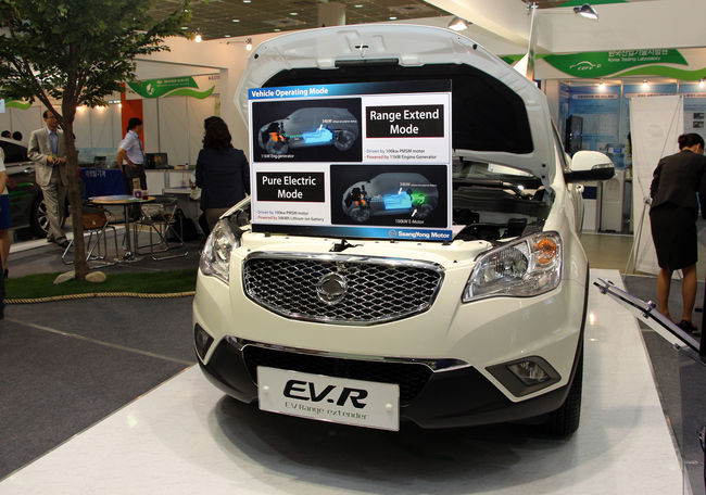 이와 함께 쌍용차도 국책과제로 개발 중인 친환경 기술을 적용한 '코란도 C EV-R'을 전시했다.