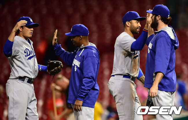승리를 거둔 다저스 선수들이 기뻐하고 있다./youngrae@osen.co.kr