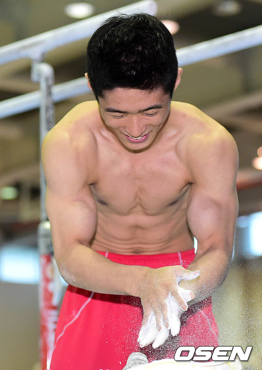 체조 양학선이 훈련 준비를 하고 있다.