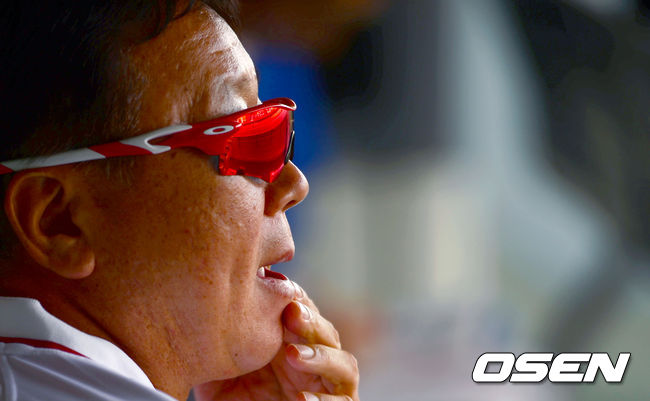 11일 오후 광주-KIA 챔피언스필드에서 열리는 2014 한국야쿠르트 세븐 프로야구 KIA 타이거즈와 한화 이글스의 경기에 앞서 KIA 선동렬 감독이 생각에 잠겨 있다.