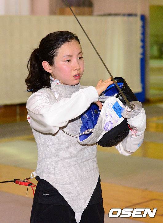 여자 펜싱 대표팀 남현희가 훈련을 준비하고 있다.