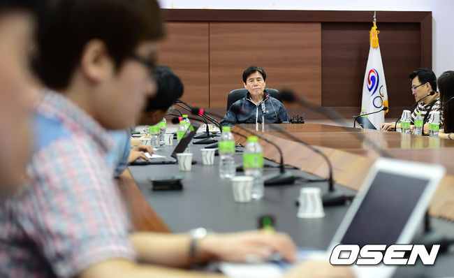 최종삼 태릉선수촌장이 취재진의 질문에 답을 하고 있다.