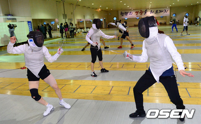 펜싱 대표팀 선수들이 훈련을 하고 있다.