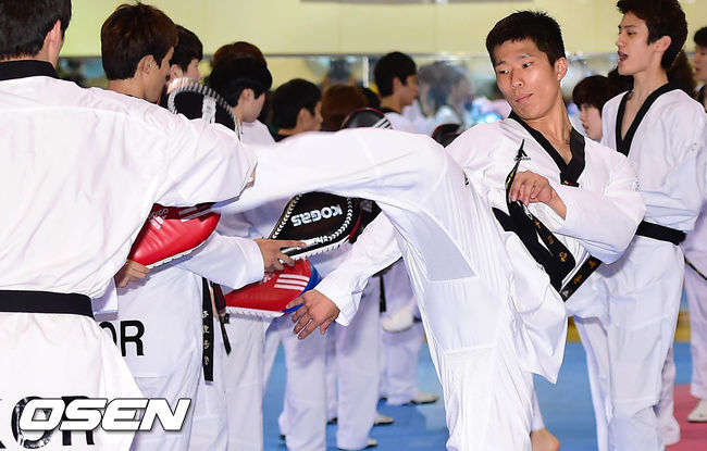 태권도 대표팀이 훈련을 하고 있다.
