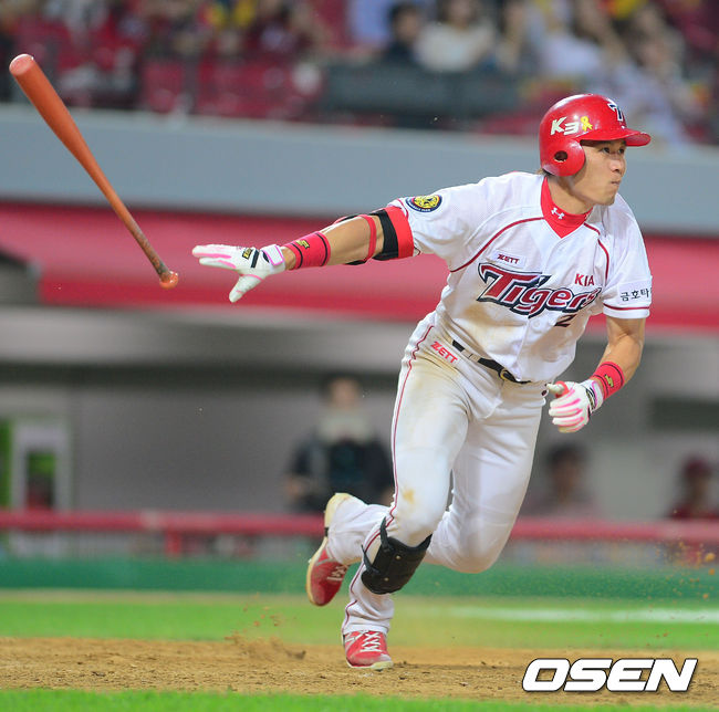 11일 오후 광주-KIA 챔피언스필드에서 열리는 2014 한국야쿠르트 세븐 프로야구 KIA 타이거즈와 한화 이글스의 경기,5회말 1사 2루 KIA 신종기링 1타점 적시타를 날리고 있다.