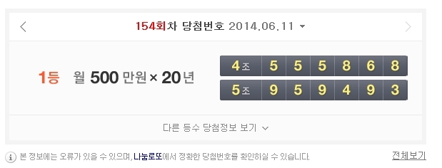 4등 당첨번호는 각조에서 뒷자리 숫자 5개가 55210에 해당하는 번호다. 3등 당첨금은 1000만원, 4등 당첨금은 100만원이다.