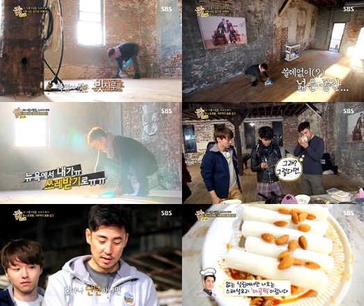 갖고 있는 재료들을 갖고 김성수가 만들어 낸 음식은 '아몬드 골뱅이 가래떡'. 가래떡을 삶고 초장에 버무린 골뱅이와 살짝 곁들인 아몬드의 조화는 생각이상으로 맛이 있었다. 다만, 정경호는 "가래떡도 쫄깃하고 골뱅이도 쫄깃해서 턱이 아프다"며 음식의 단점을 꼽아 웃음을 자아냈다.