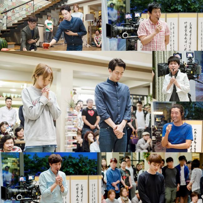 드라마의 안녕과 무사고를 기원하며 경건히 기도하는 자세로 임하던 제작진과 배우들은 “제작 기간 동안 스케줄 빵구 귀신, 날씨 변덕 귀신, NG귀신은 금하게 하시고 원하는 대로 날씨 귀신, 한번에 오케이 귀신, 대박 귀신은 몰아주소서”라는 유머 가득한 축문 구절에 웃음을 터뜨리며 고사식은 시작됐다.