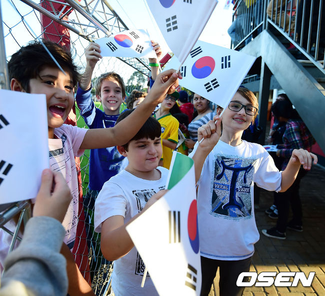 홍명보호의 첫 훈련을 보기 위해 모인 브라질 소년팬들