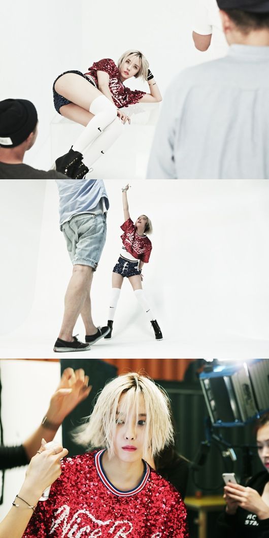효민은 지난 5월23일 서울 논현동에서 신곡 '나이스 바디(NICE BODY)' 재킷 촬영을 가졌다. 이날 현장에서 살짝 엿본 효민의 스타일은 에너지 그 자체.