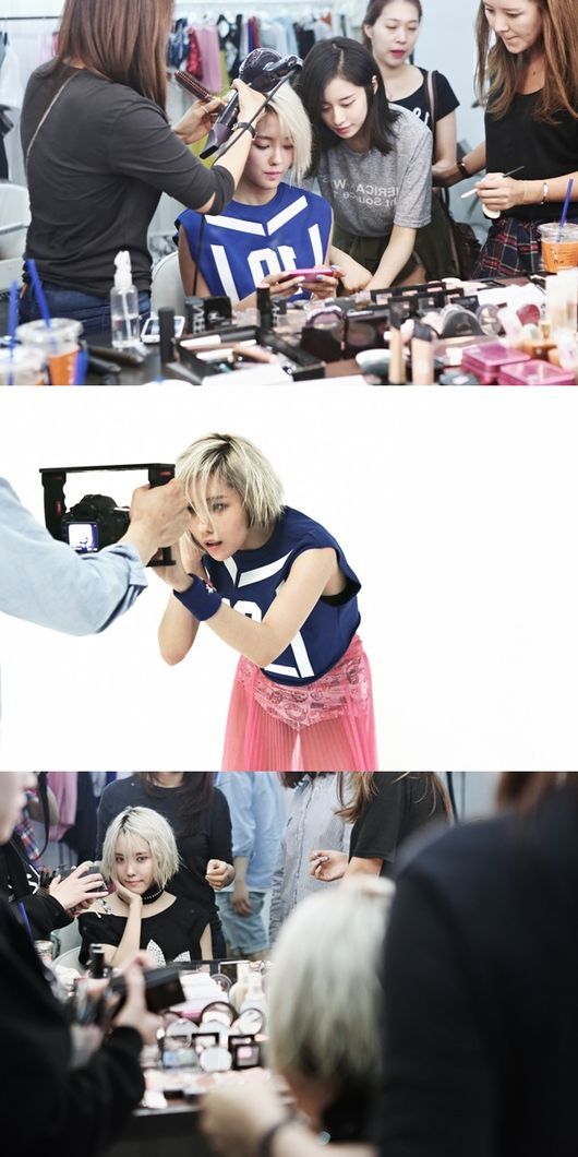 이날 현장에는 티아라의 멤버 지연, 은정도 함께 했다. 이들은 효민의 스타일을 봐주며 조언도 하고, 일손도 도우며 의리를 뽐냈다. 화려하게 꾸민 효민과 달리 수수한 모습의 지연과 은정의 모습도 인상적.
