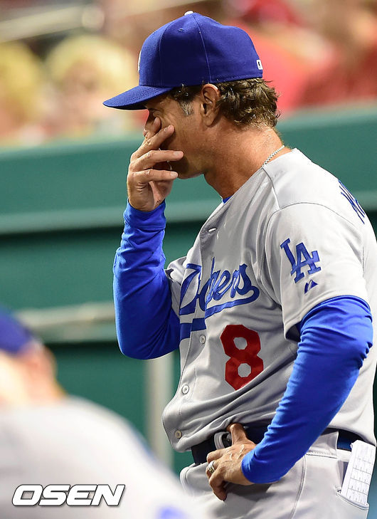 12일(한국시간) 신시내티에서 열린 신시내티 레즈와 LA 다저스의 경기 7회초 1사 만루 다저스 라미레즈의 병살타때 매팅리 감독이 아쉬운 표정으로 경기를 바라보고 있다.